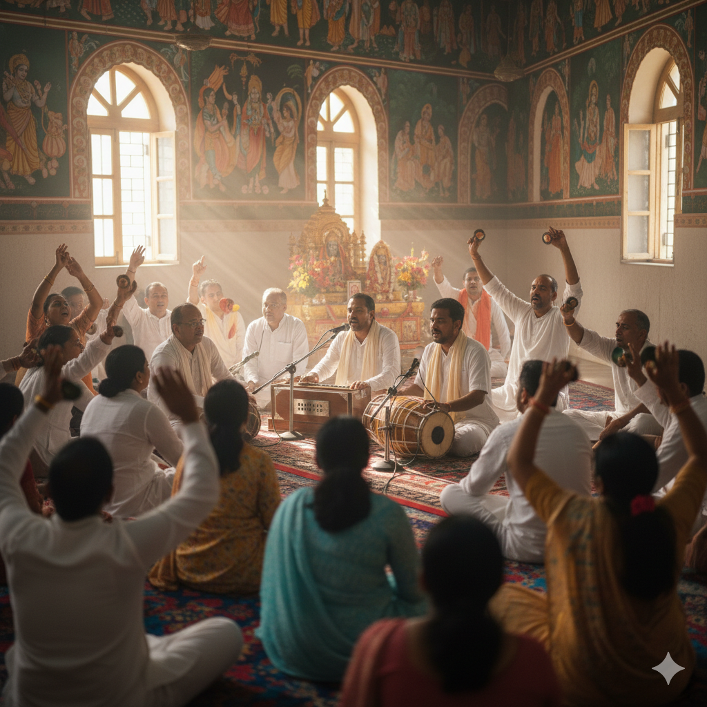 Experience the divine bliss of devotional music and congregational chanting.